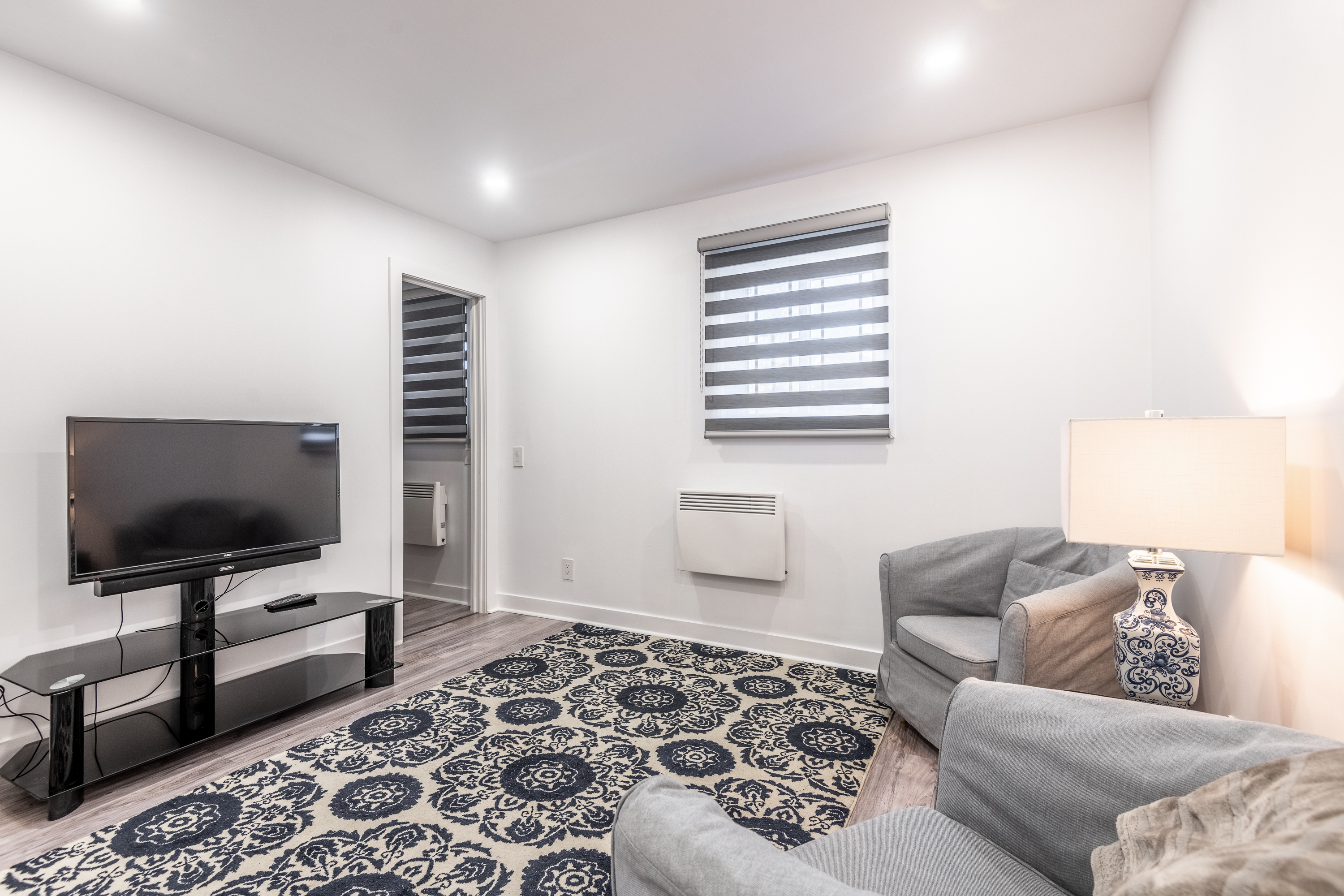 Doté d’une configuration semi-sous-sol, cet espace présente une cuisine spacieuse, équipée d’un lave-vaisselle pour simplifier votre quotidien, deux (2) chambres à coucher et 1 espace de bureau ( ou salle a manger). Découvrez également un salon intime, soigneusement fermé par une porte, offrant un accès direct à la cour arrière grâce à une porte patio. L’aménagement astucieux crée une atmosphère chaleureuse et conviviale, parfaite pour vos moments de détente.